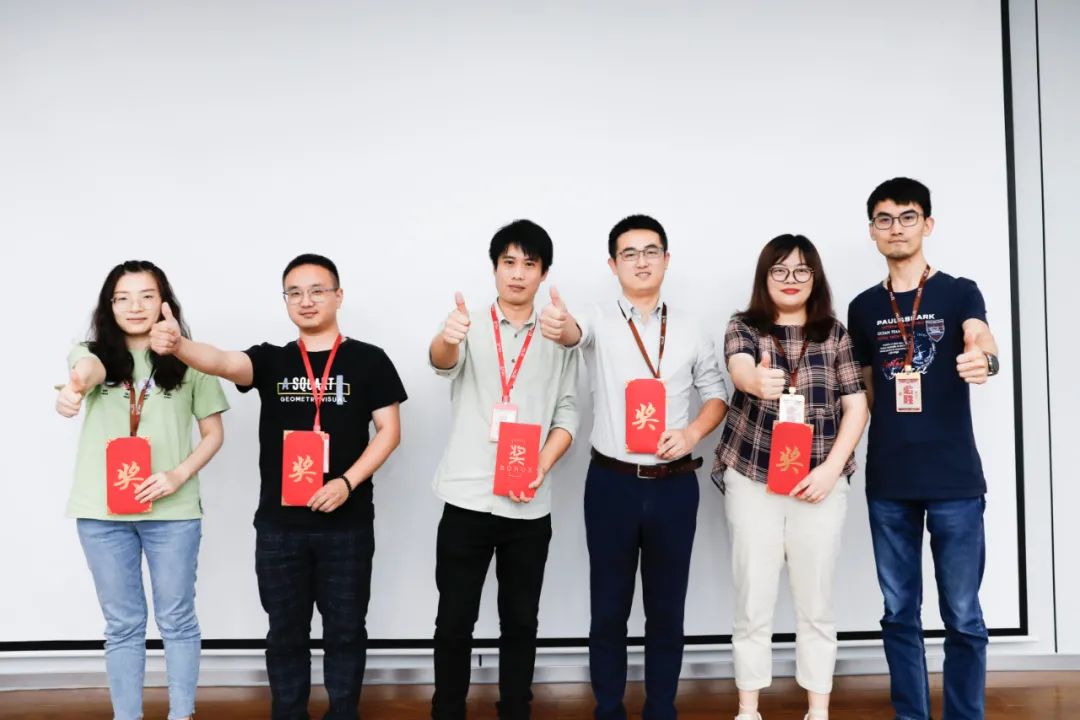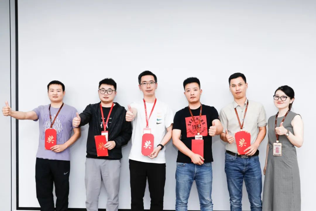 两大设计奖项颁发完毕,为鼓励研发团队在618战斗中,在爱果乐未来的产品项目中打赢每一场攻坚战,爱果乐为2020年新品项目进行了阶段性颁奖。研发部优秀项目组分别上台领奖,获奖代表依次发表获奖感言,人力资源行政部负责人和研发部负责人为其颁奖。