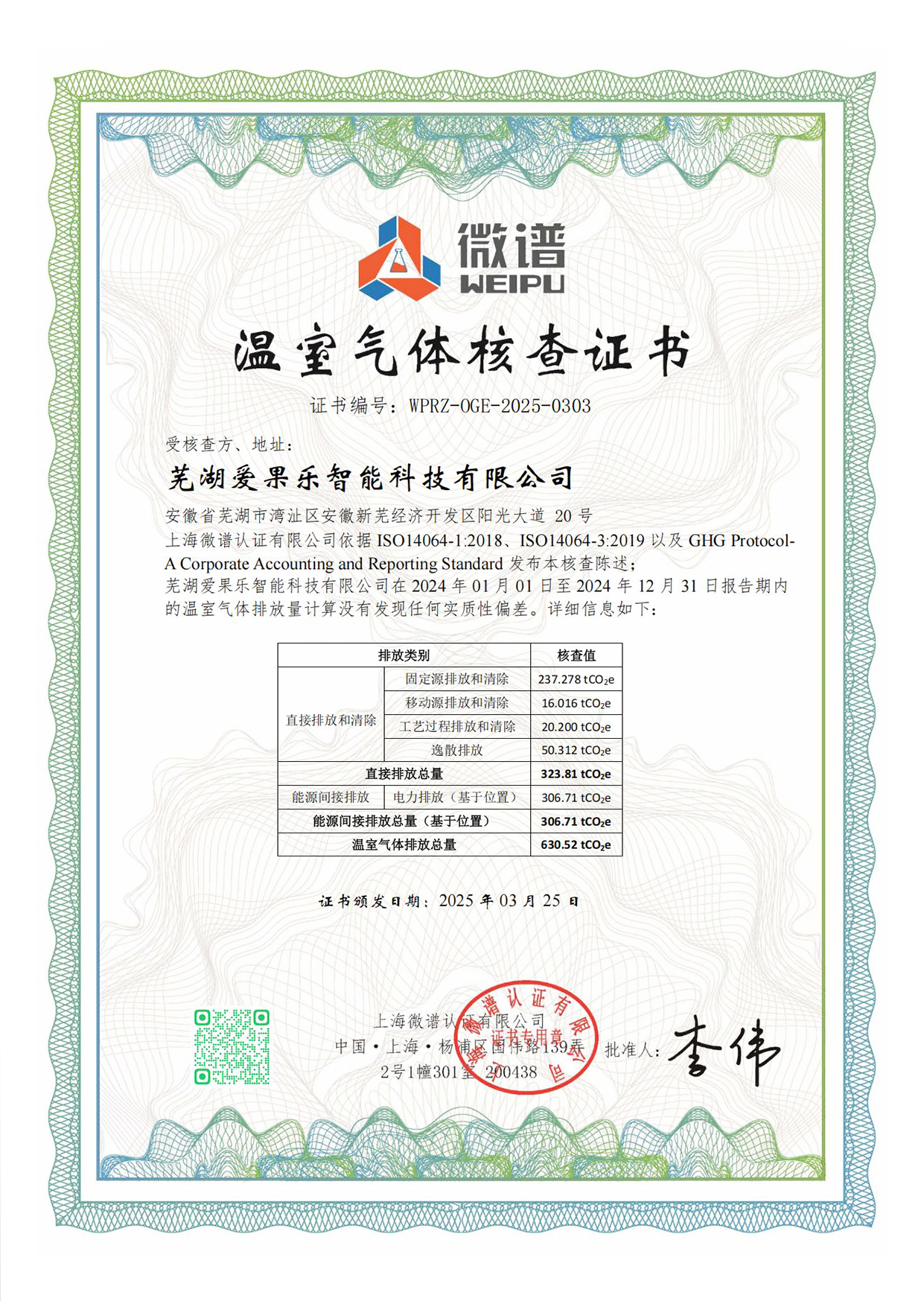 2024年温室气体核查证书