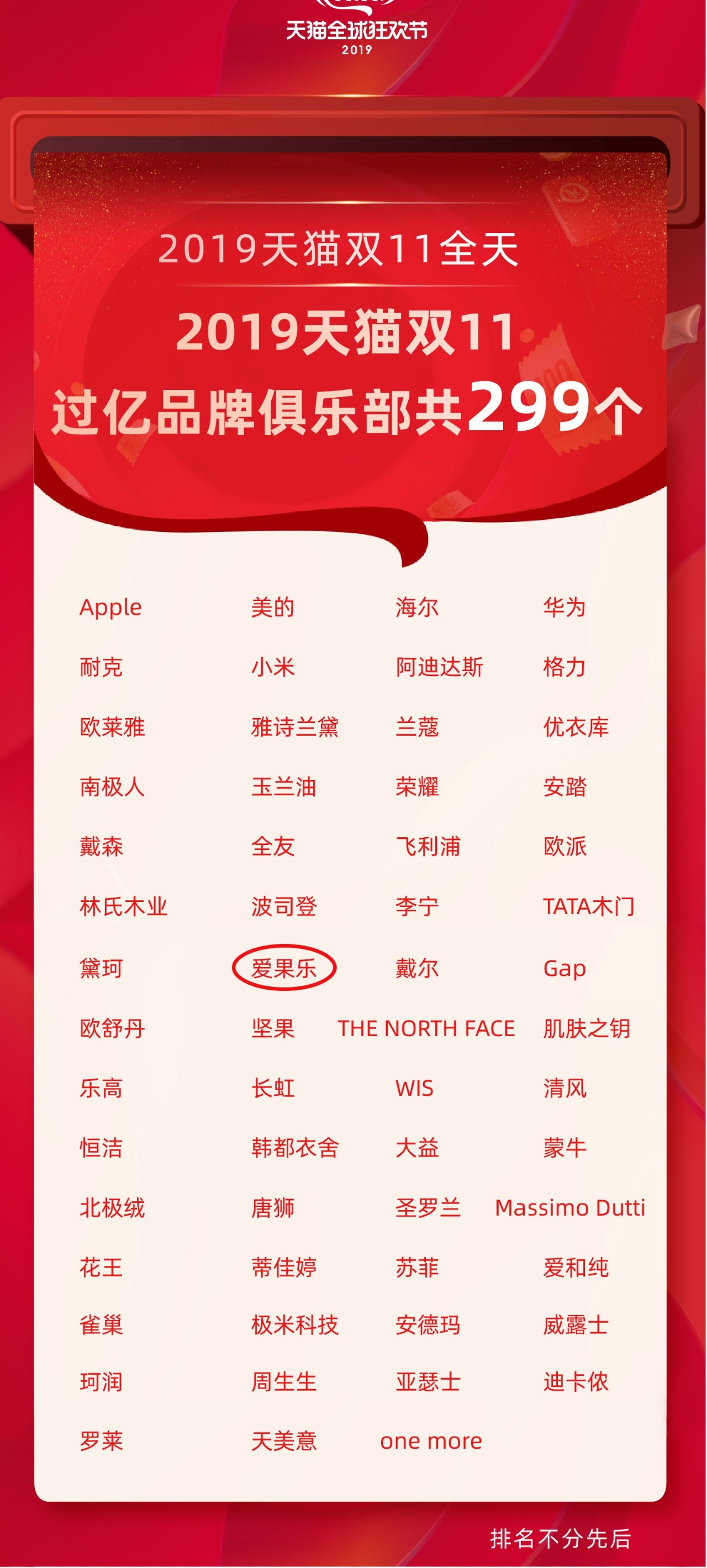 爱果乐2小时30秒成功成为行业首家破亿品牌